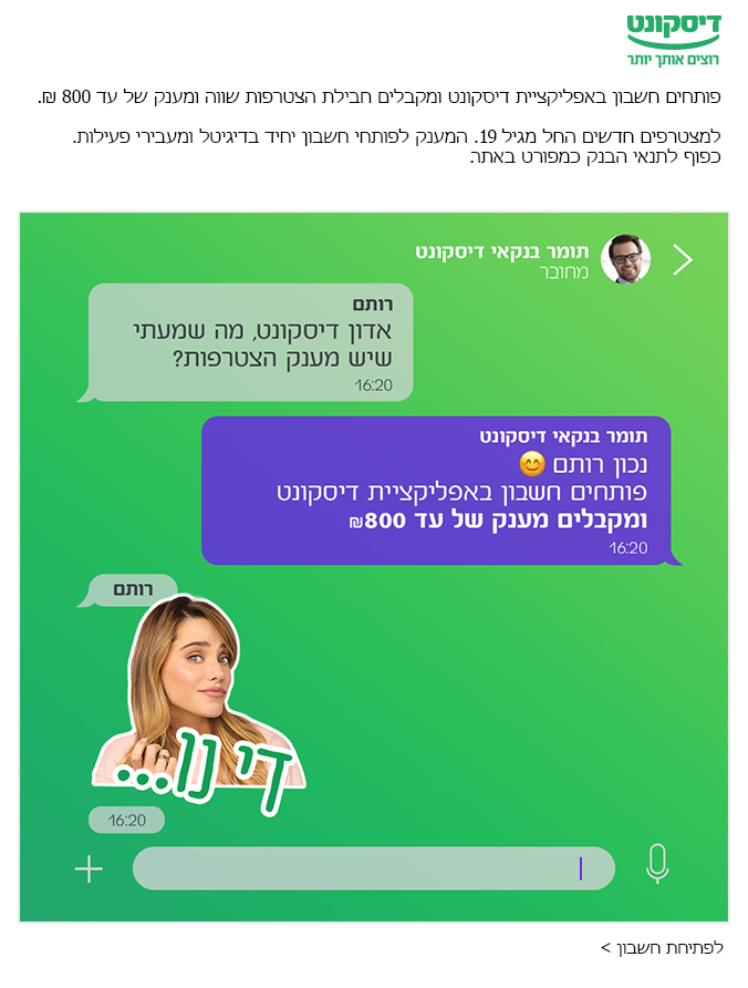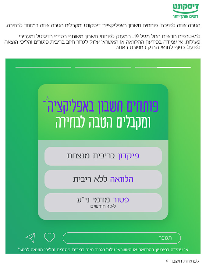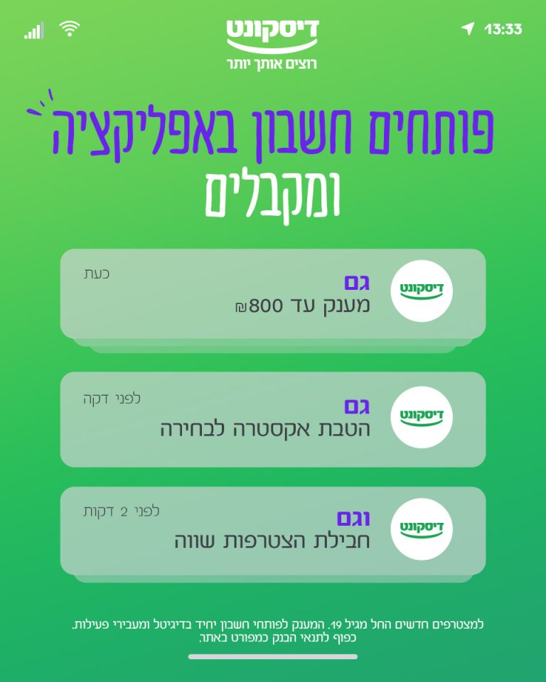 In this digital campaign for Discount Bank, I participated in conceptualising and creating digital elements to communicate the bundle of benefits offered by Discount.